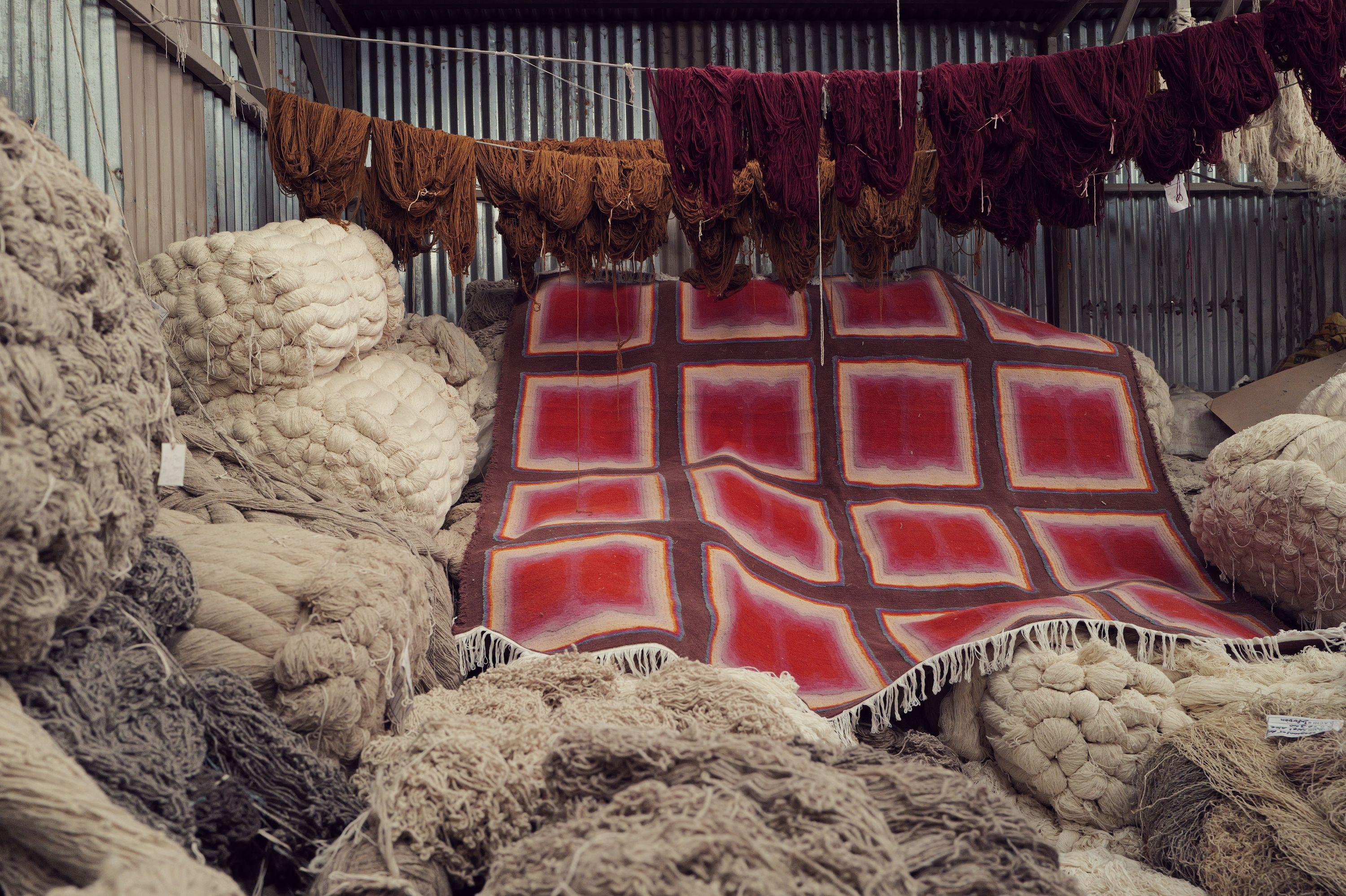 The Color of Copper captures this organic transformation, translating the accidental beauty of oxidation into a warm, radiant color palette, meticulously reproduced by expert artisans through a labor-intensive process. Combining threads of Himalayan wool, pure silk and aloe in alternating saturations, they developed a new color system that mirrors the luminous, ever-changing nature of copper’s surface.