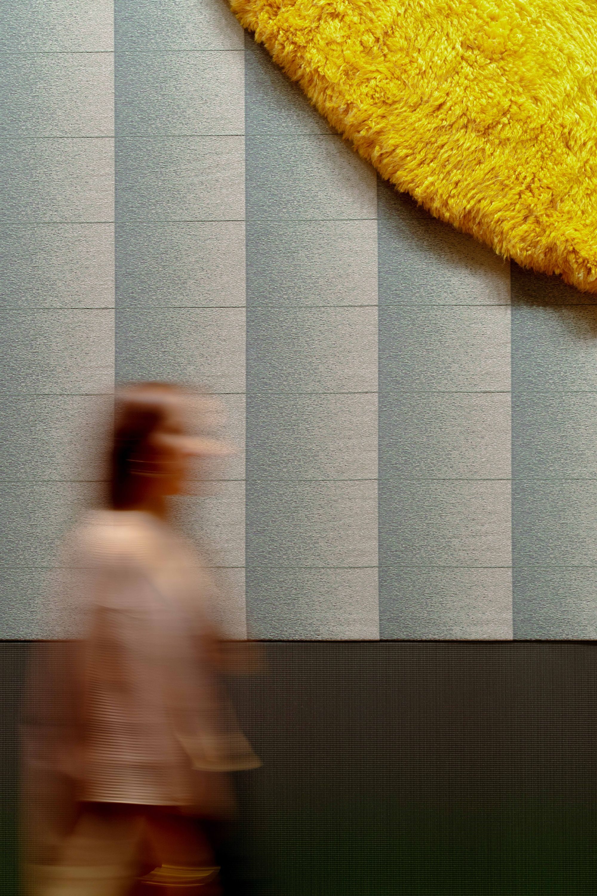 Together with the cc-tapis team, the designer investigates the minimalistic structure of tatami replacing traditional Japanese igusa straw with strips of felted wool, dyed in signature shades. Experimenting with the handloom process, an iconic Indian production technique, natural yarns are woven around the cozy and insulating felt, recreating the suppleness and softness of the tatami mat.