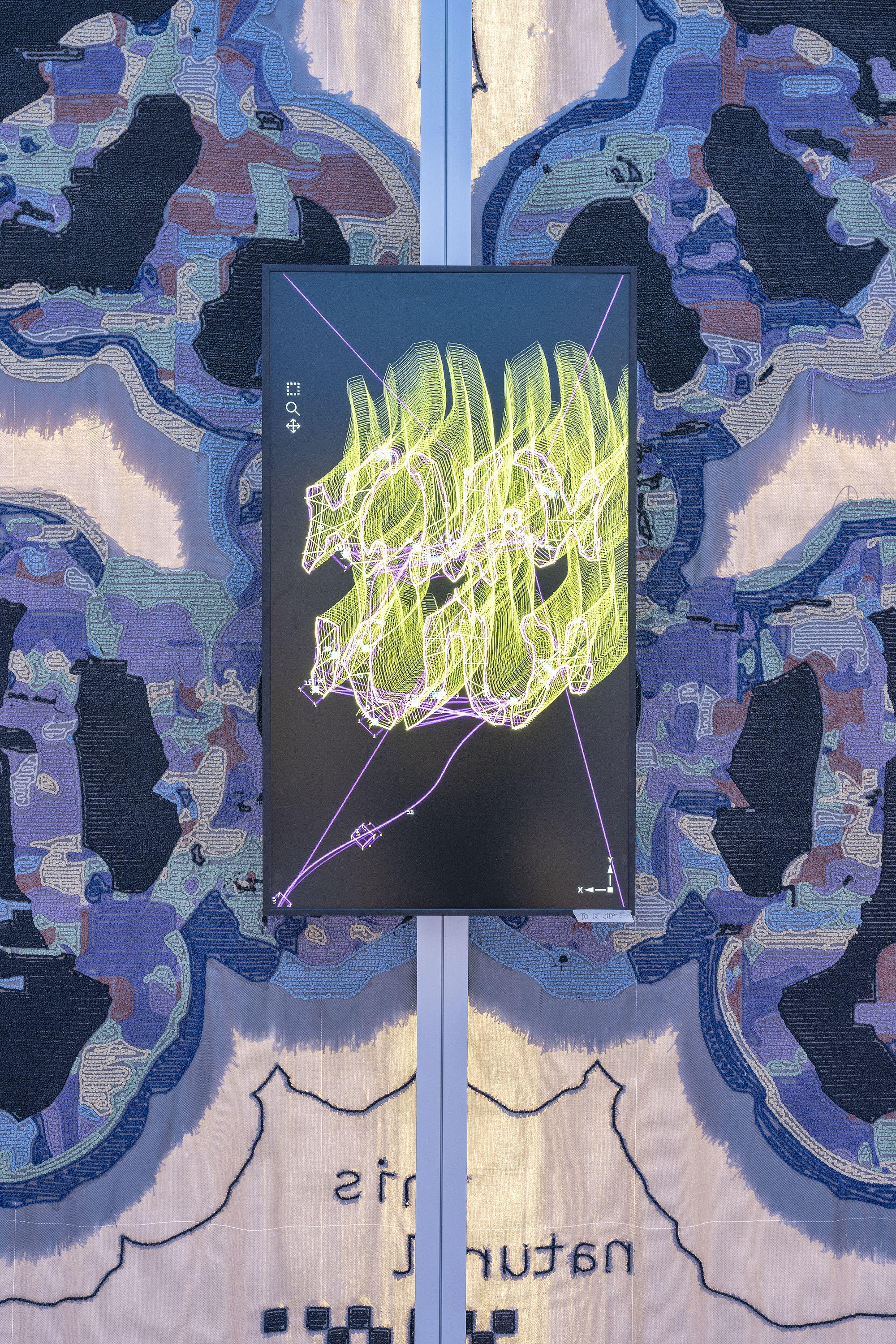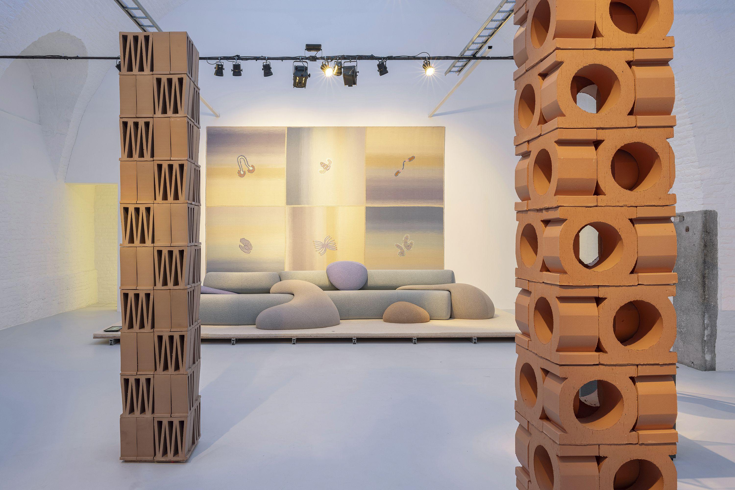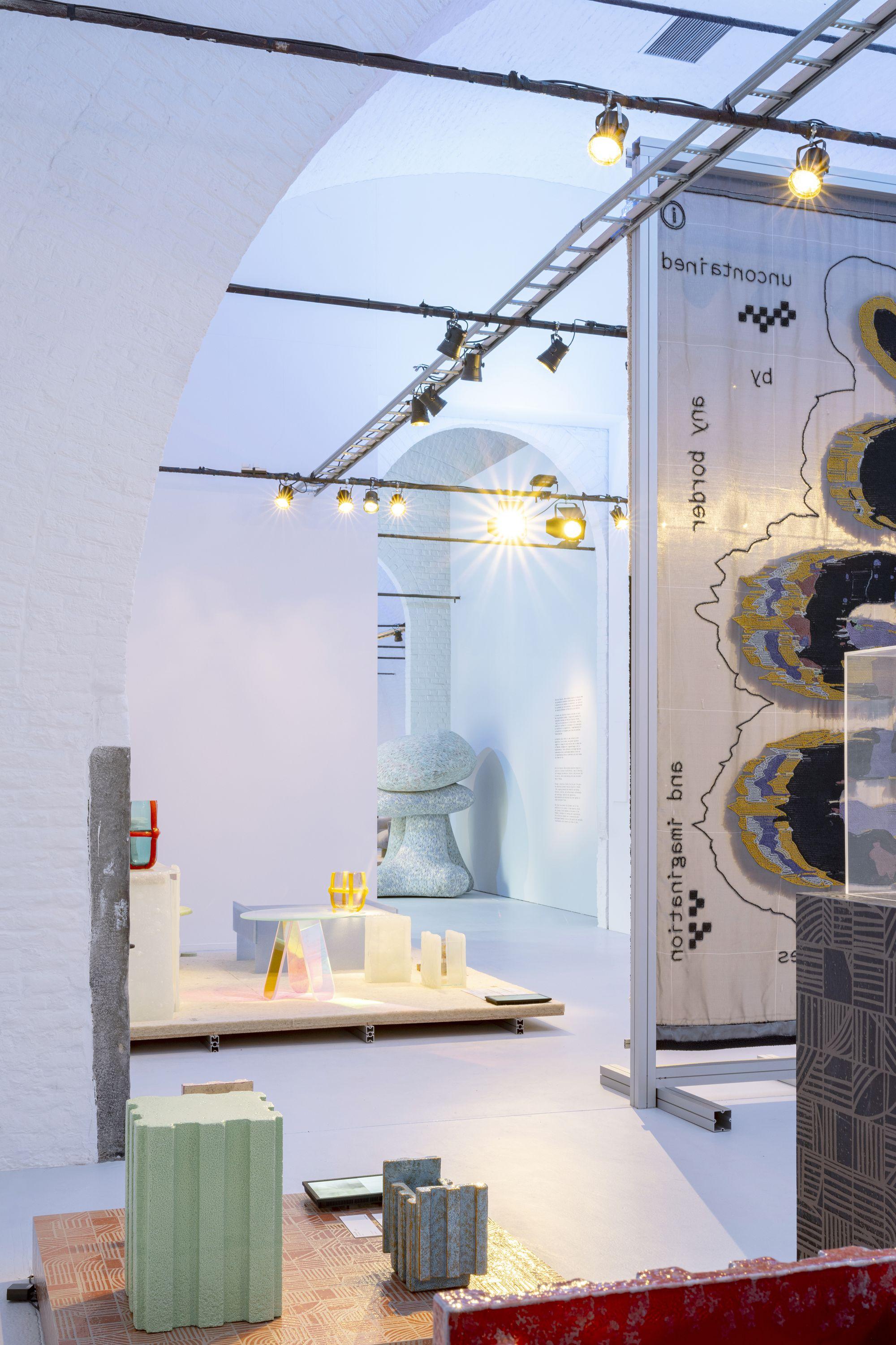 The rugs are embedded within the exhibition’s spatial and conceptual landscape, contributing to a broader reflection on how design evolves in response to cultural, environmental and technological change. Textile surfaces, colour and materiality act as active elements within a setting shaped by experimentation and transformation.