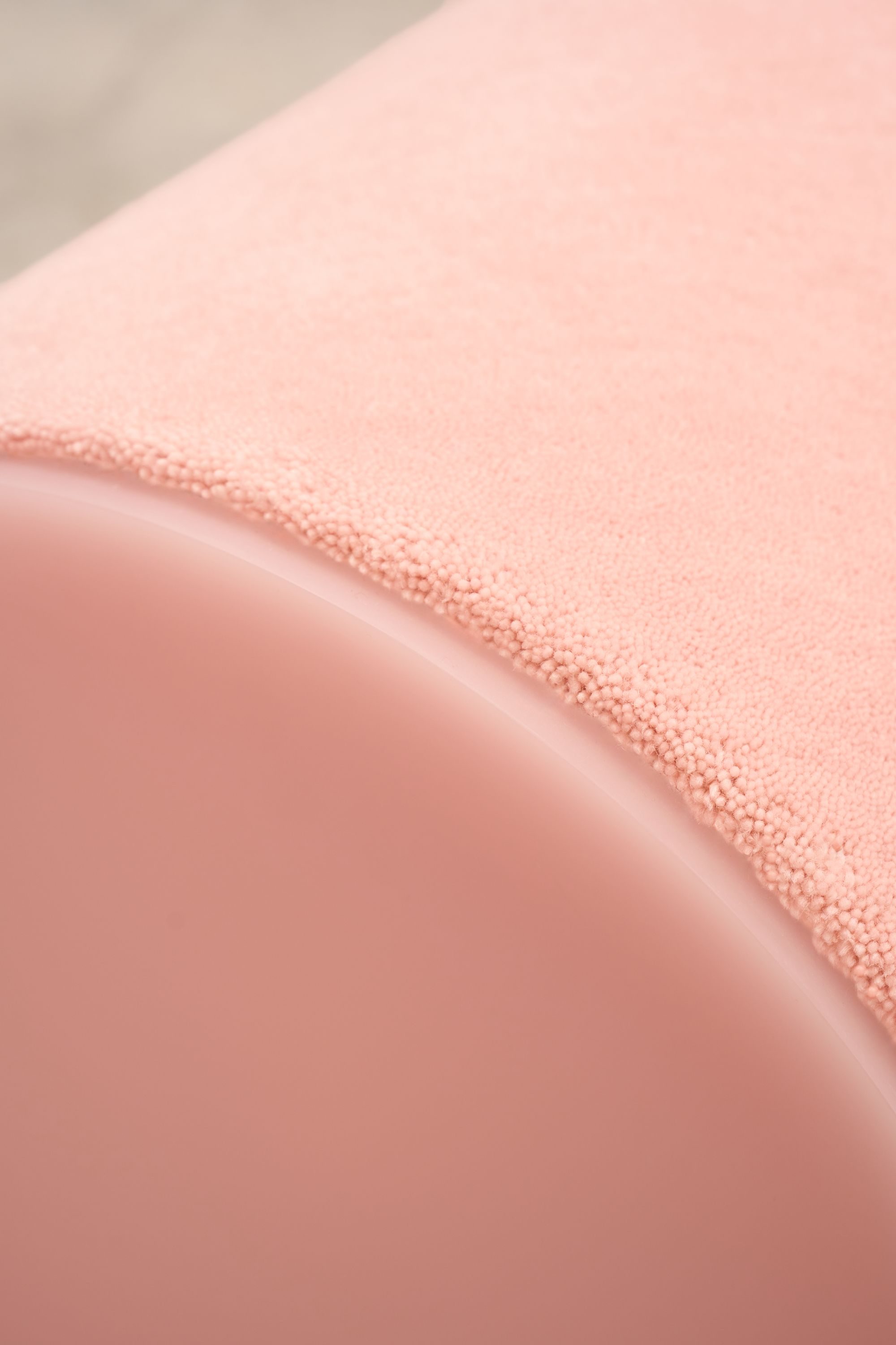 Material contrast plays a central role: soft, hand-knotted wool meets the hardness and translucency of resin, creating a tactile and visual dialogue. Though radically different in nature, the two elements are unified by a monochromatic palette, emphasizing continuity and sculptural presence.