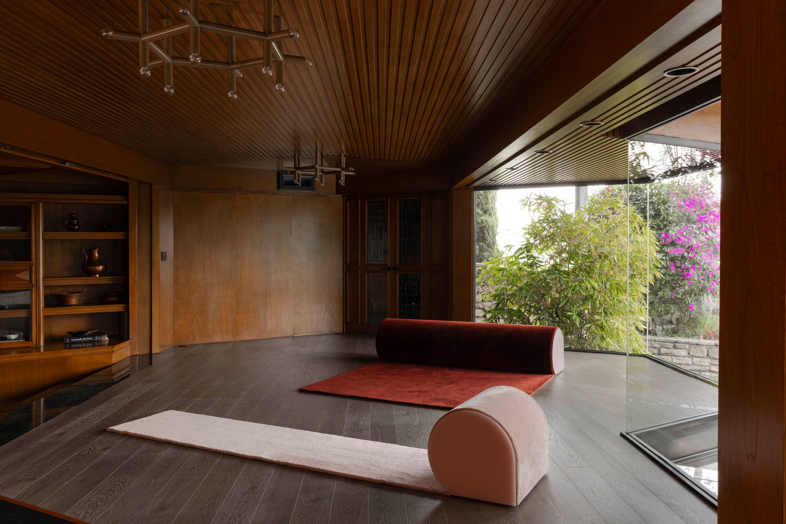 On the occasion of Mexico Art Week, cc-tapis and Sabine Marcelis presented Roll, a limited-edition series of three rugs that exist halfway between floor covering and seating, installed in a site-specific project at the Valner Residence, a landmark early-1970s home by architect Agustín Hernández in Mexico City. The work originates from the simple gesture of unrolling, freezing the moment when a rug ceases to be just a surface and begins to take on sculptural presence. Each piece transforms simultaneously into a surface and a seat, making familiar domestic gestures tangible while crystallizing them into singular, poetic forms.