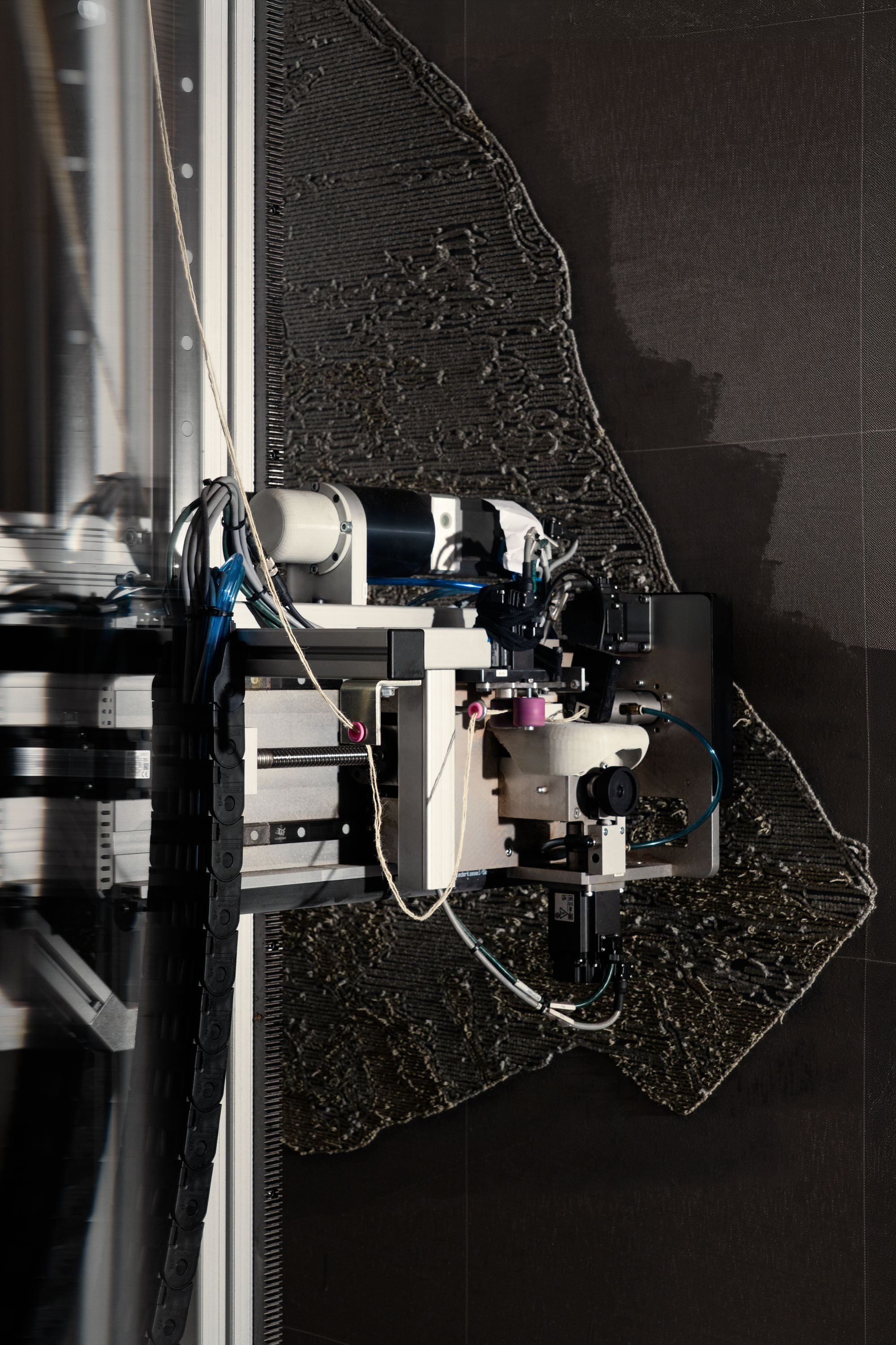 The piece was developed through cc-tapis’ Made in Milan service, an experimental prototyping platform based at the company’s headquarters in Milan. Here, designers and collaborators can explore new production possibilities using advanced robotufting technology, enabling precise control over yarn direction, pile height and material combinations.