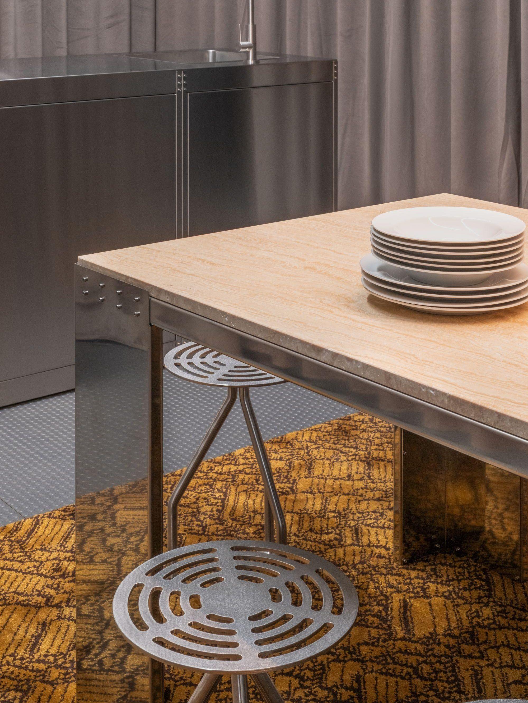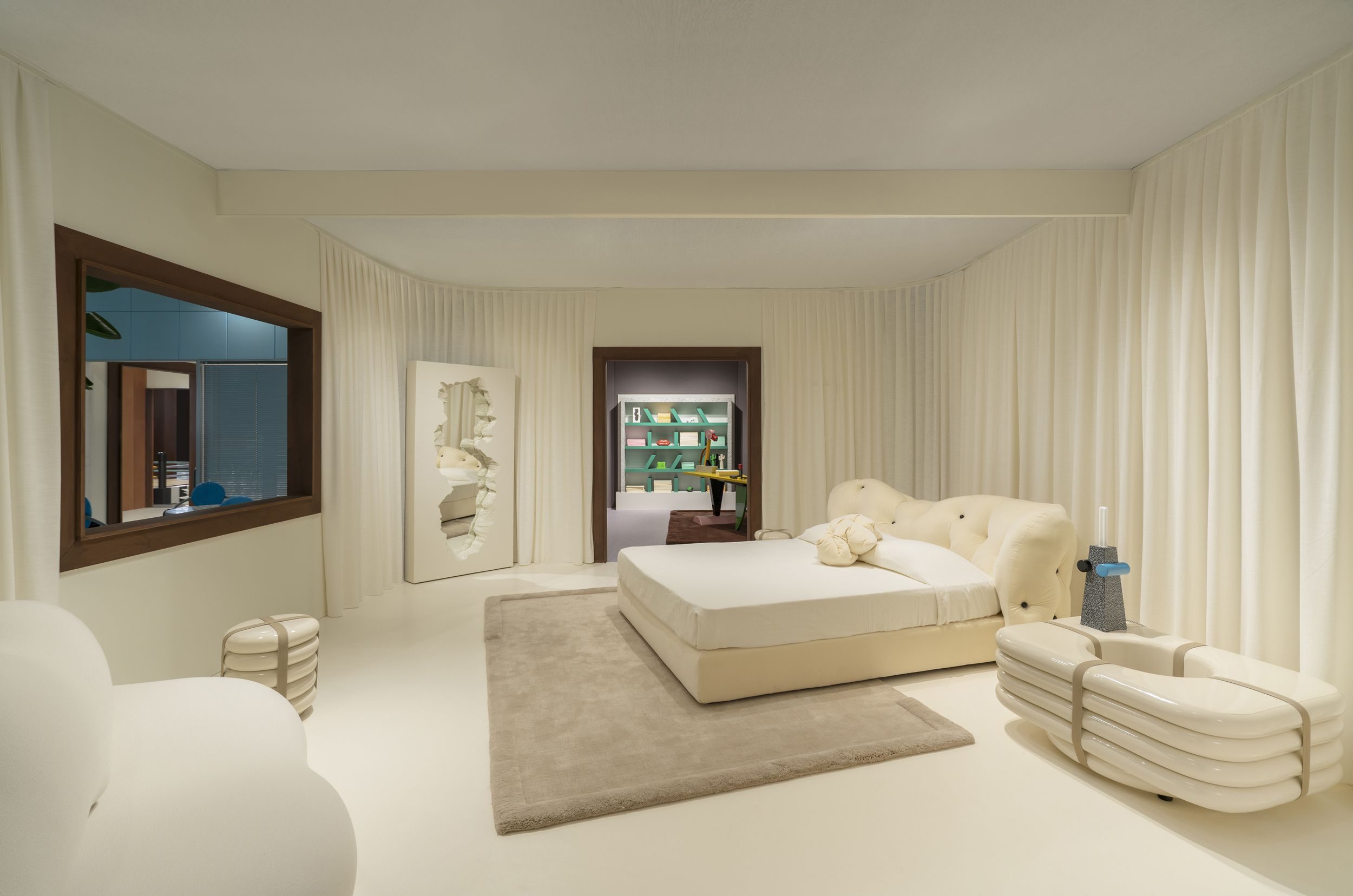 Nilufar Grand Hotel is Nilufar’s immersive curatorial platform for Milan Design Week 2026, reimagining hospitality as a collectible design experience within the Nilufar Depot. Conceived as a fictional luxury hotel, the project brings together vintage and contemporary pieces, signature rooms, and scenographic environments where objects become the protagonists of a layered dialogue between design, craftsmanship, and storytelling. The exhibition also features custom rugs by Martino Gamper and Filippo Carandini, including a site-specific, ad hoc tufted carpet in the hall and lounge that helps introduce the project’s hospitality-inspired atmosphere.