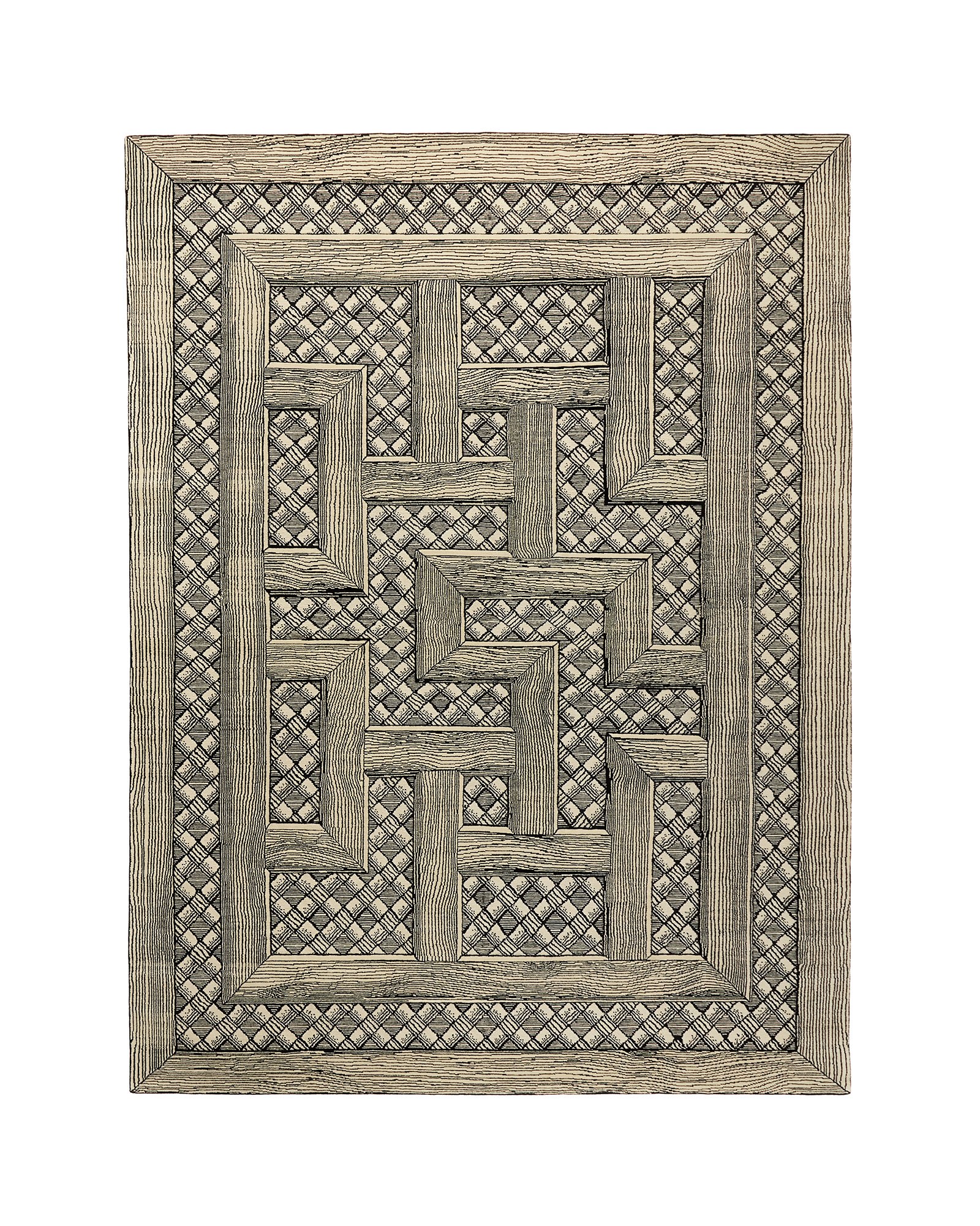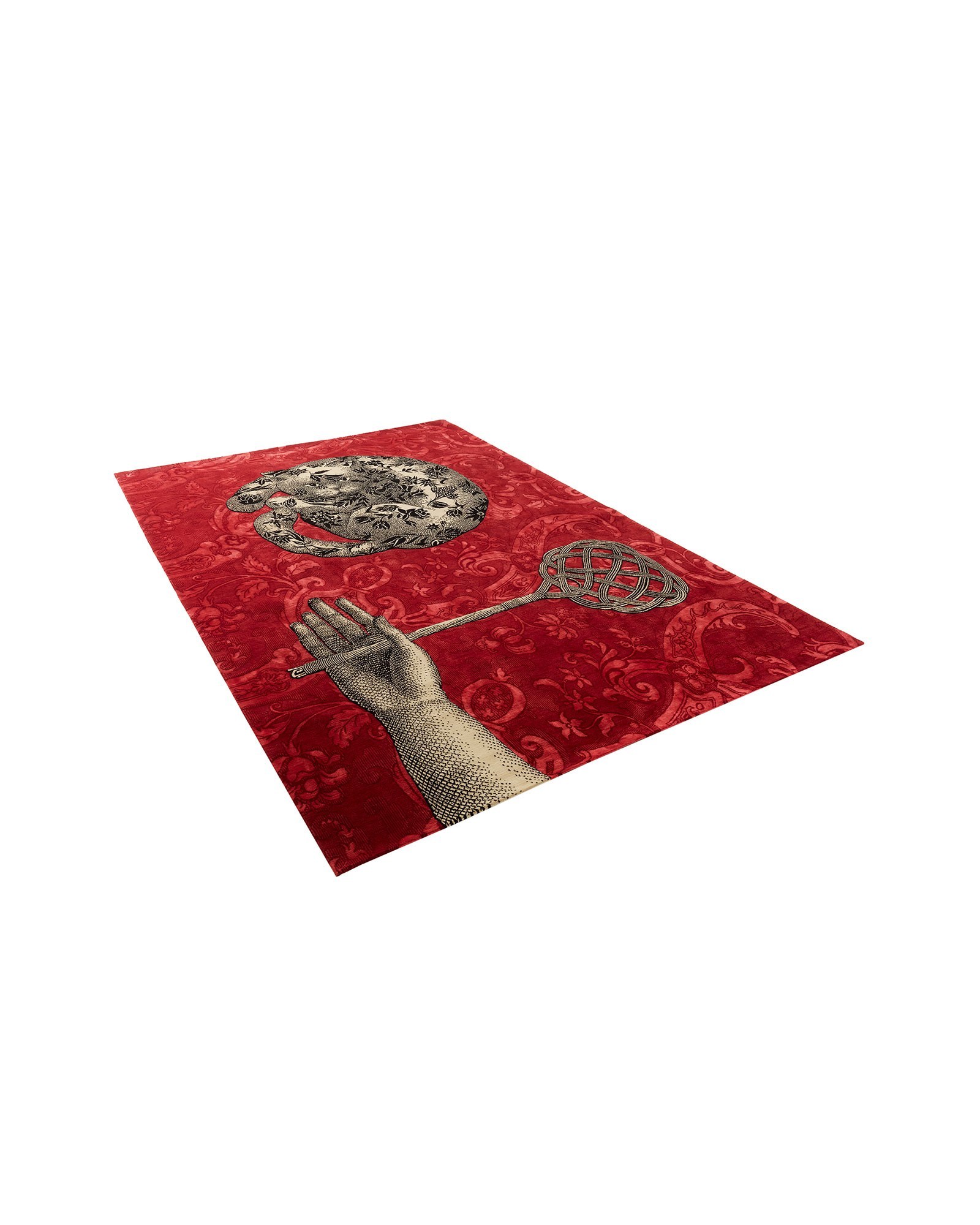 Considered a true masterpiece, this rug is hand-knotted in Nepal with an unprecedented level of craftsmanship—approximately 312,000 knots per square metre —bringing extraordinary detail to the design and elevating its luxury. Made from a blend of New Zealand wool and silk, the silk threads add subtle brilliance to select details. Produced as a limited edition, the rug combines exquisite artistry, technical mastery, and the unique narrative charm of the Fornasetti universe.