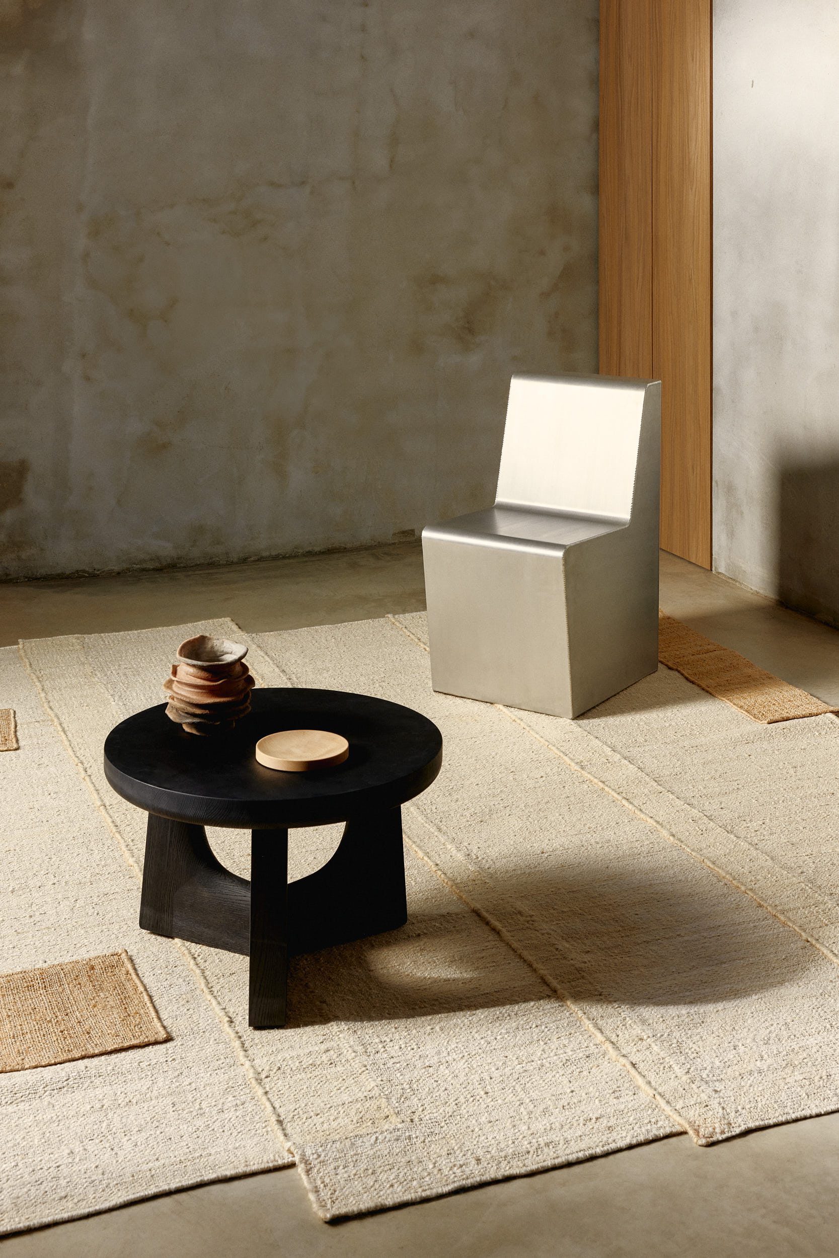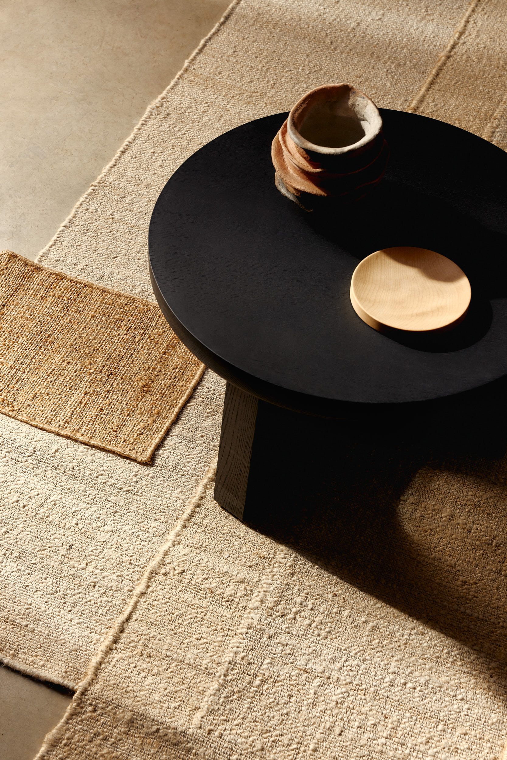 A collection of raw and tactile rugs designed by Destroyers/Builders for cc-tapis, where layered jute textures reinterpret collage techniques and architectural forms with a process-driven sensibility.