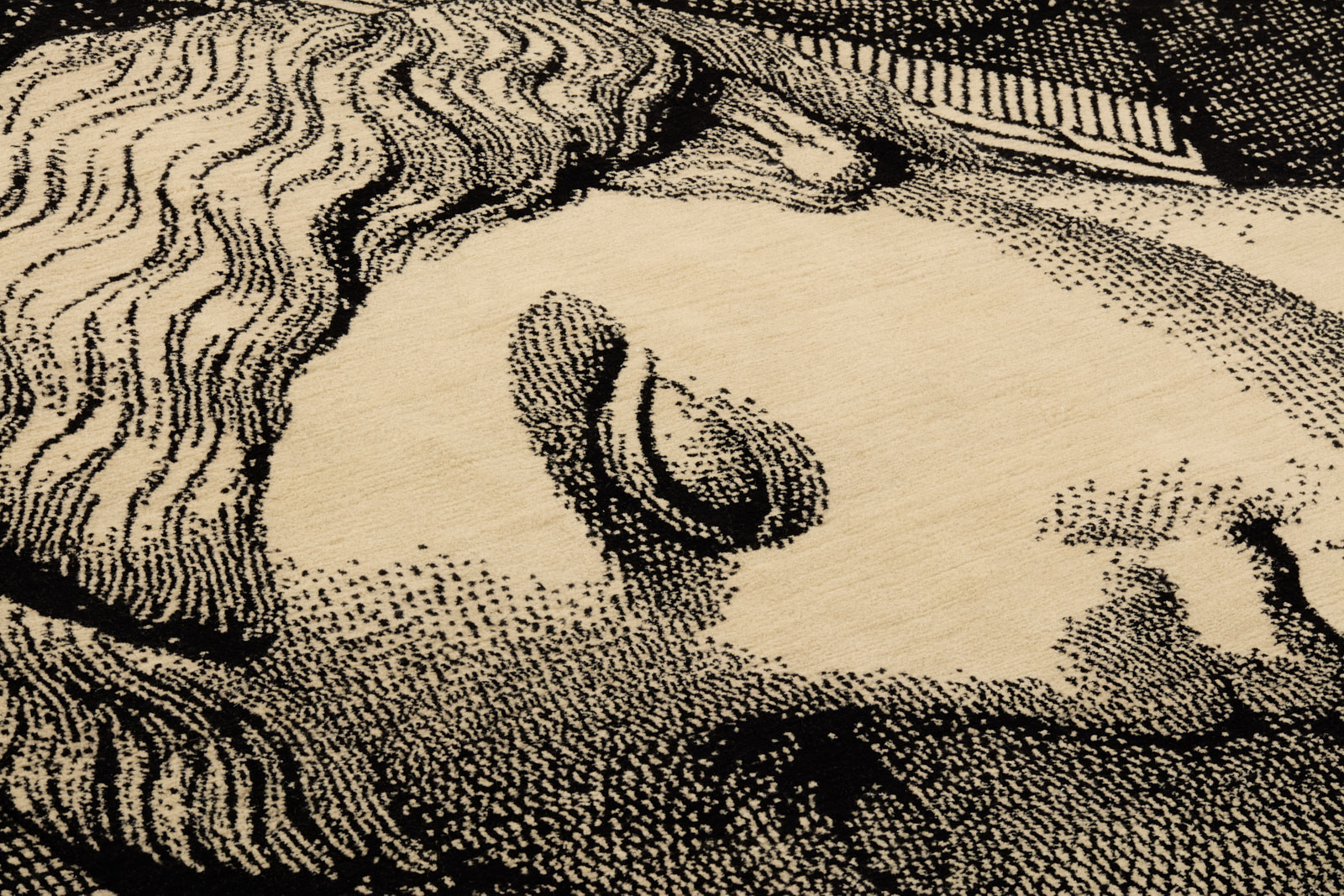 Proudly hand-knotted in Nepal from 100% New Zealand wool at an exceptionally high quality, the rug is crafted in a freeform shape that follows the contours of the design, with no borders, allowing the scene to unfold organically across the floor.