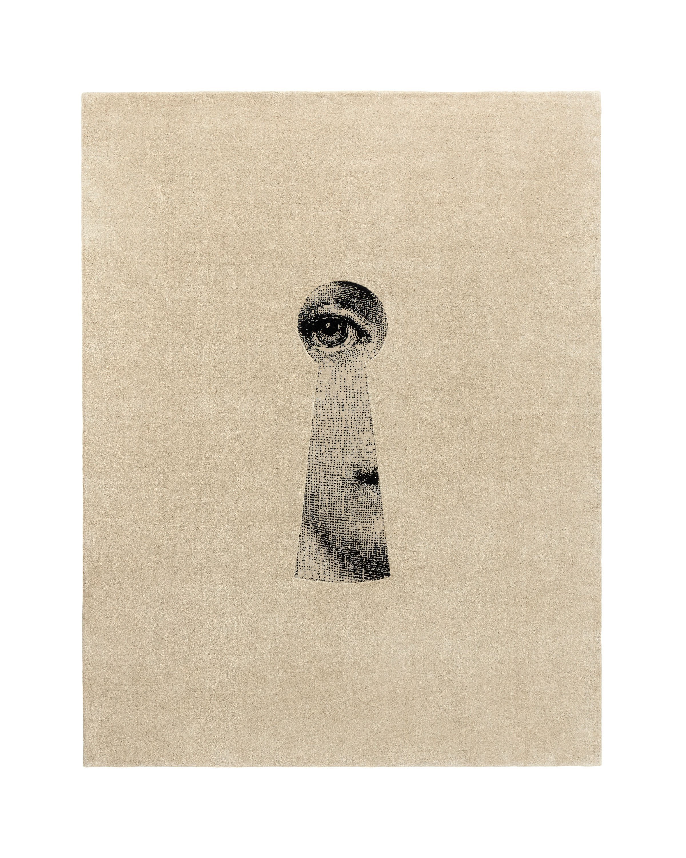 In this beloved motif from the Fornasetti universe, the face of Lina Cavalieri—the famous soprano whom Piero often depicted and reinterpreted across many works—is framed by the sharp profile of a keyhole. The effect is that of a stolen glimpse: an anatomical detail emerging from darkness, transforming a classical reference into a decorative element rich with symbolic impact.