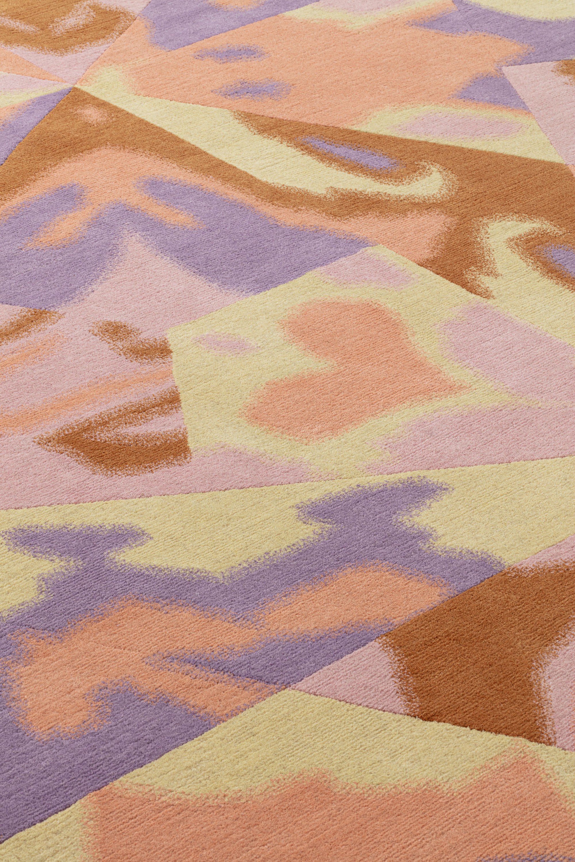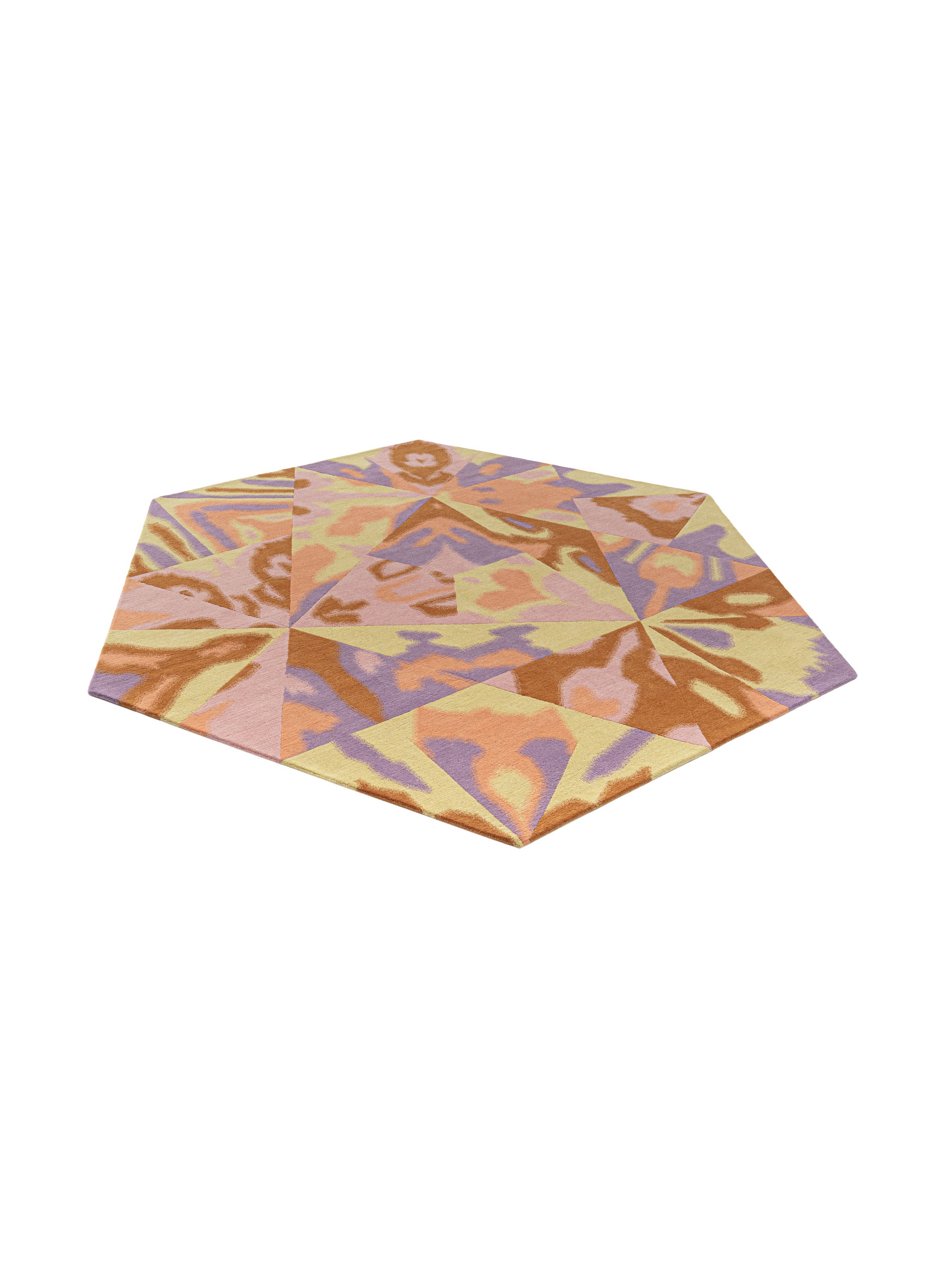 The Soft Wood Rug is a kaleidoscopic vision that unfolds and tessellates across the surface of a handknotted rug. Crafted by skilled Tibetan artisans in Nepal, this design is an evolution of Bethan Laura Wood extensive work in custom wooden veneers, originally created with Alpi, the renowned Italian specialist in wood composites.